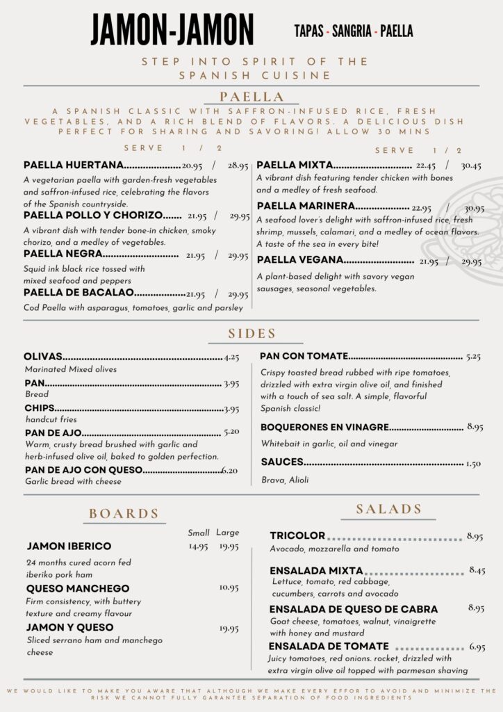 Experience the vibrant taste of Spain with our carefully curated menu, featuring authentic dishes made from the finest ingredients.
