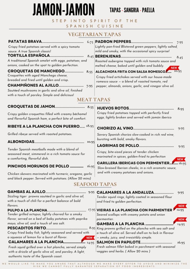 Discover the rich flavors of Spain with our new dishes, crafted to bring a fresh taste of tradition to your table.